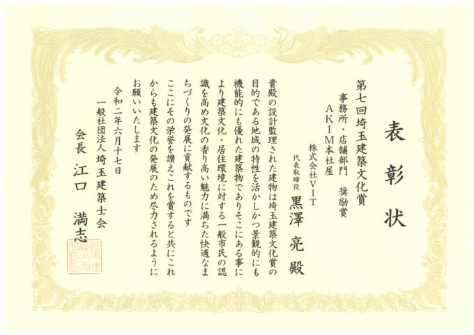 一般社団法人 埼玉建築士会様主催の埼玉建築文化賞において
