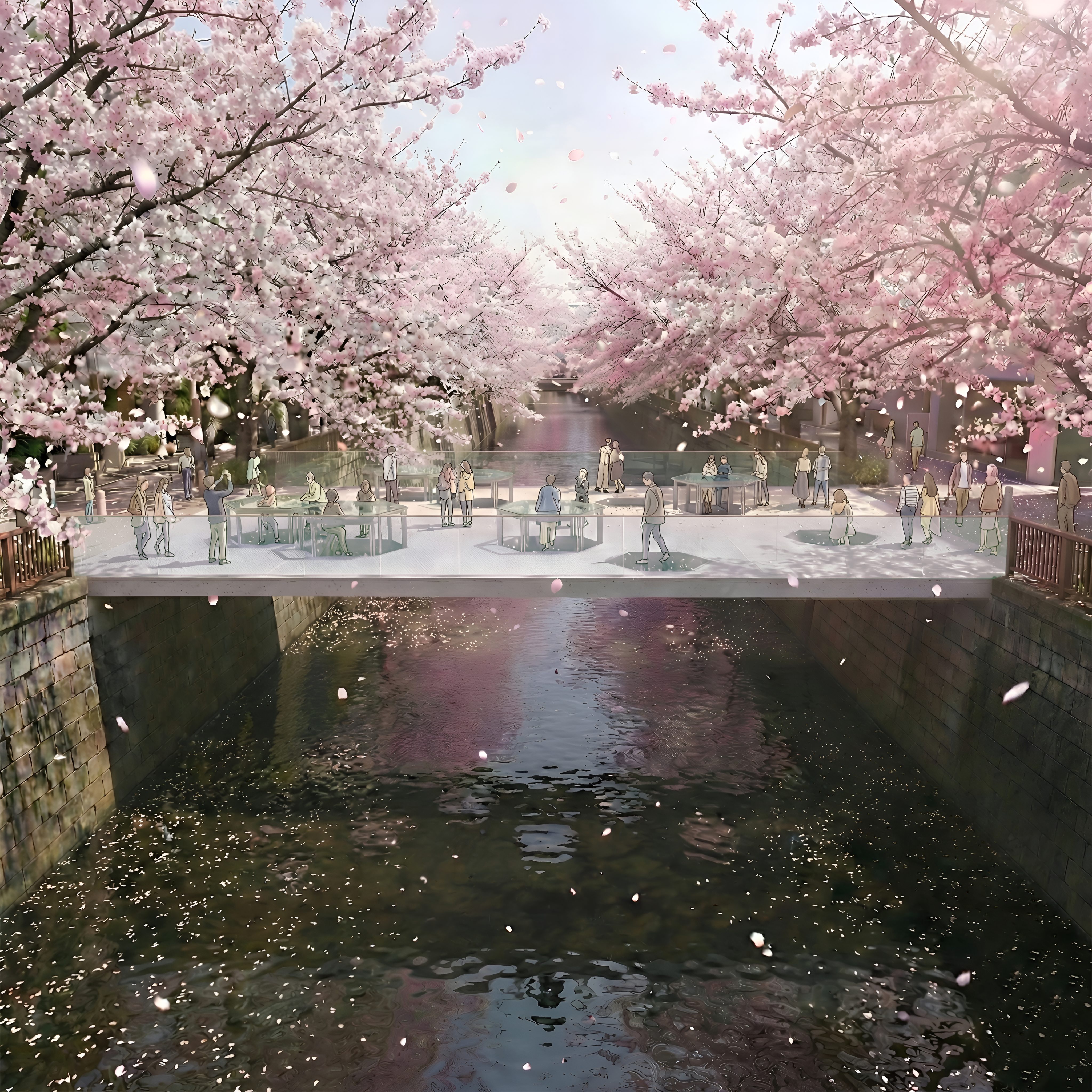 面的な広がりをもたせたら、川の上の広場のような使い方ができるのではないか?