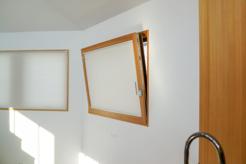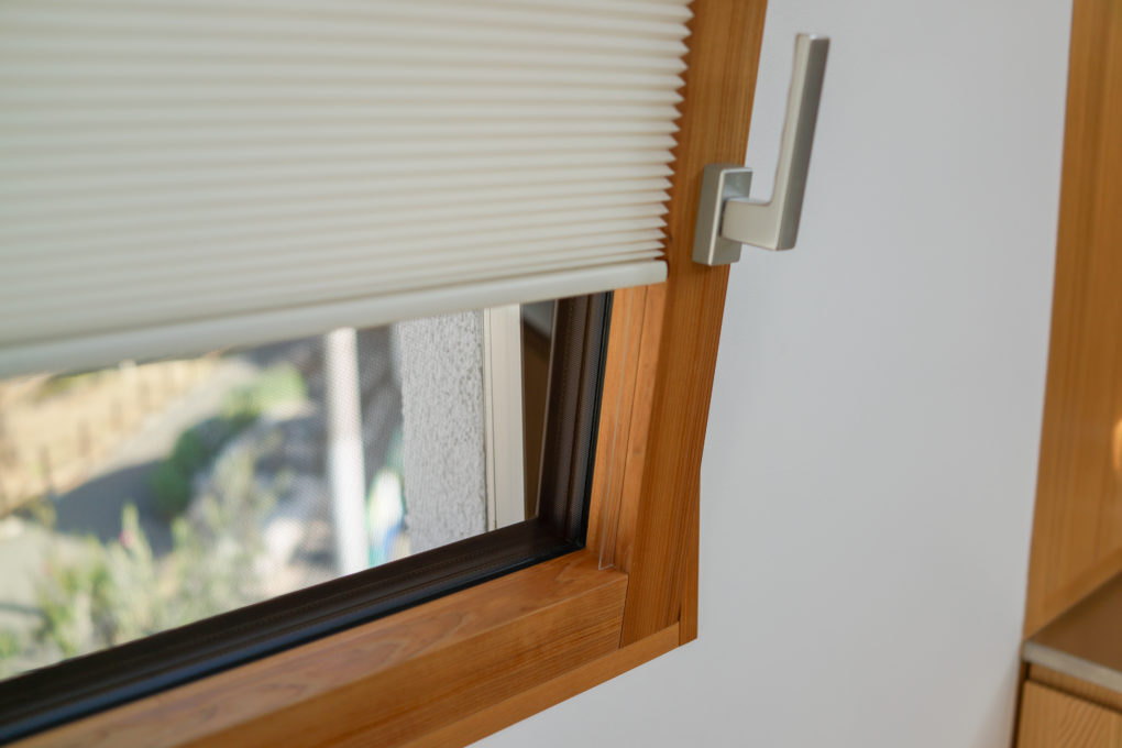 ハンドルを上に向けると内倒し窓になり、夜間に視線を遮ったまま、窓を開け締めできます。