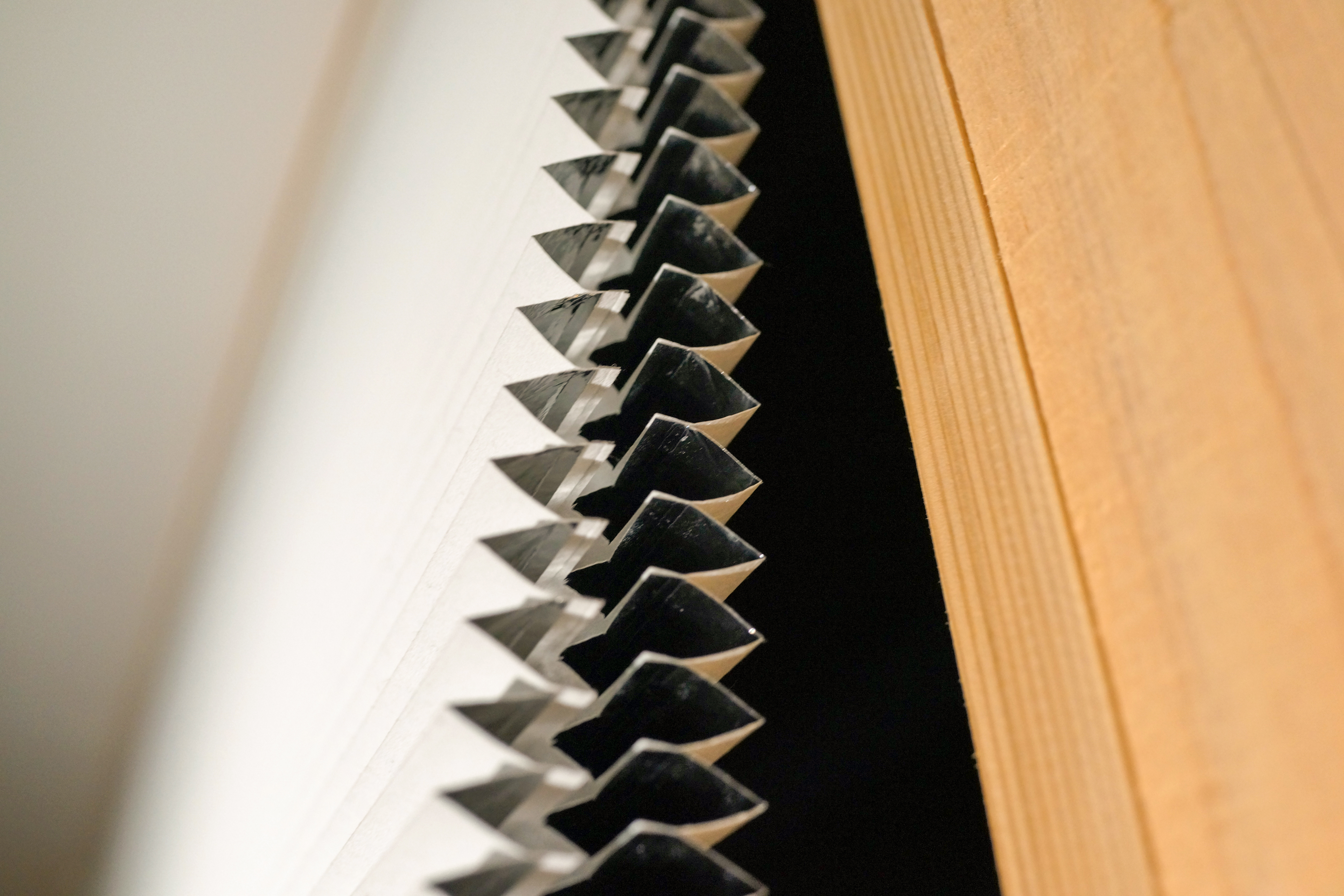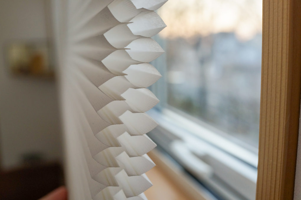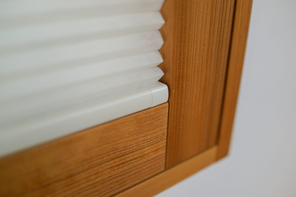 窓を斜めに傾けても、ハニカムが手前に垂れてこないように、ディテールを仕込みました。