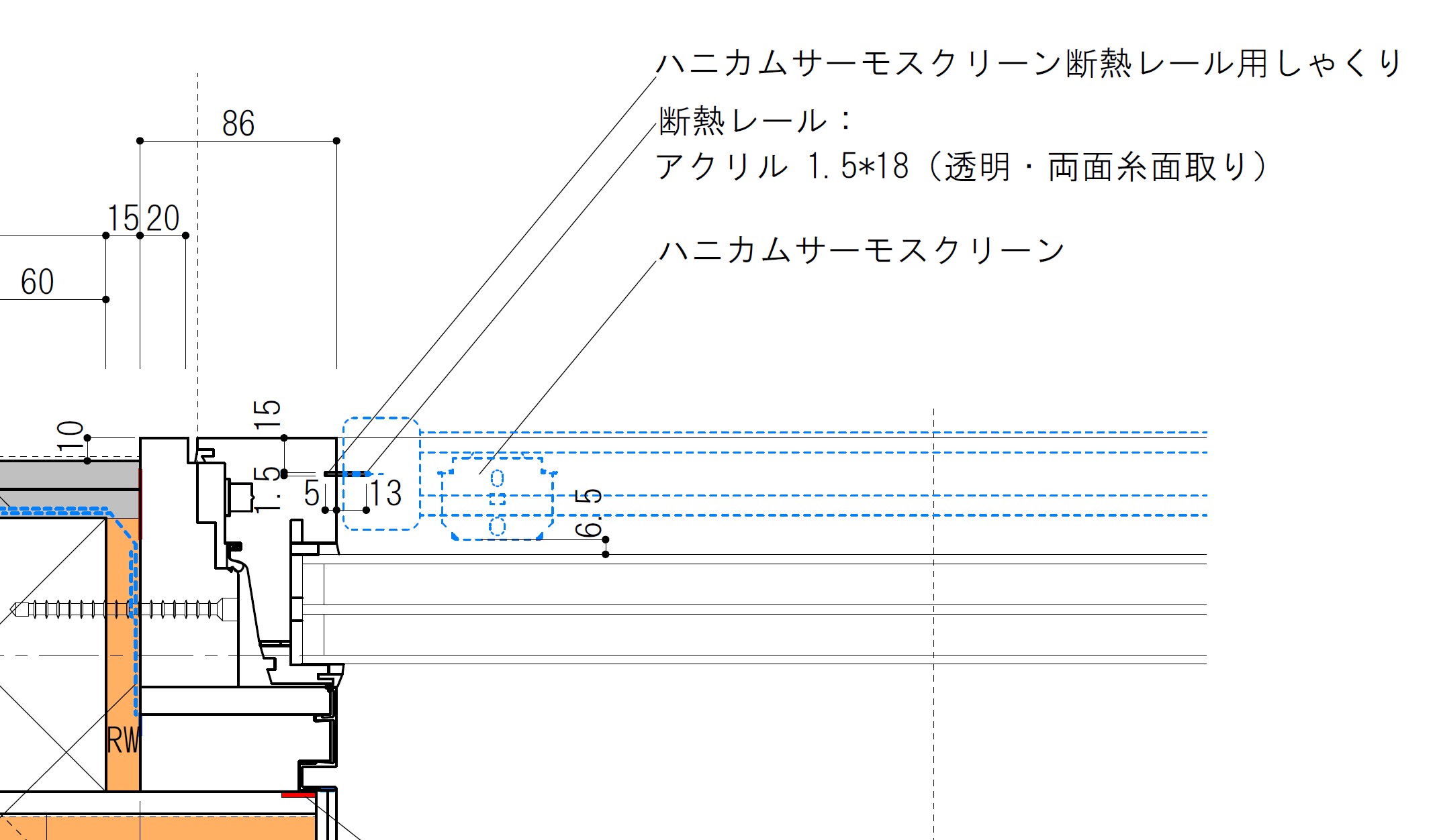 (注:この場合、ハニカムに標準で付属している断熱レールは廃棄することになります。)